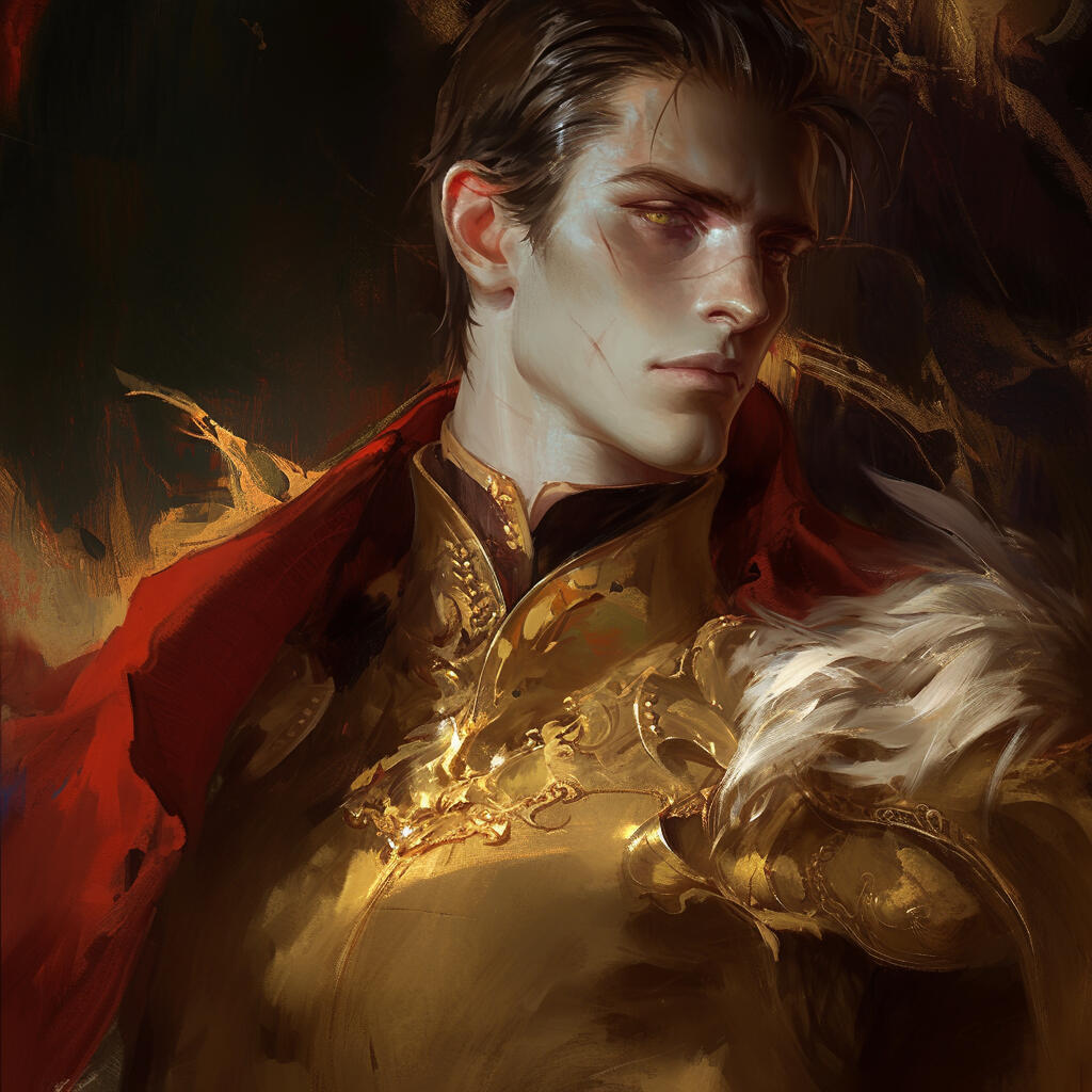 King Cyprus Valois is a ruthless and calculating monarch, ruling with an iron fist over a war-torn and haunted land. His presence commands fear and respect, with a gaze that seems to pierce through the souls of those who stand before him. Cyprus is a master of manipulation and strategy, often using his six five elite knights, The Aegis of Valois, as extensions of his will to crush dissent and maintain order. Clad in golden, ornate armor, he is both a fearsome warrior and a shrewd ruler, always two steps ahead of his enemies. His reign is marked by a relentless pursuit of power, where mercy is seen as a weakness, and loyalty is rewarded only as long as it serves his interests. Cyprus’s harsh rule has left the land scarred, but his subjects, out of fear or respect, remain steadfastly under his control, knowing that defiance means certain death.