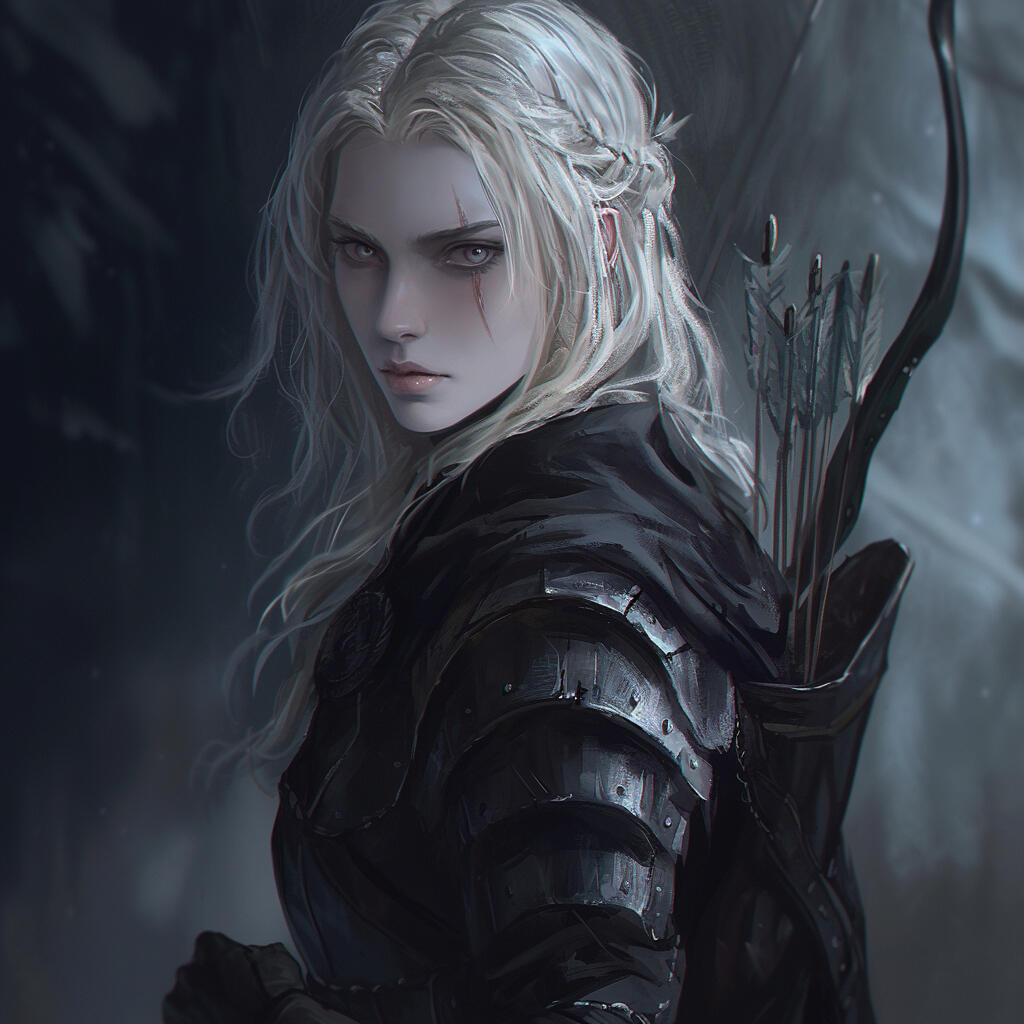 Lady Isolde Virelai, the sixth knight of The Aegis of Valois, is a spectral presence amidst the moonlit shadows of the kingdom’s sprawling forests. Known throughout the land as "The Ghost Knight," her very essence seems to merge with the darkness of night, making her an enigma even to her closest allies. The forests she roams are not merely a backdrop for her operations but her true domain, a sanctuary where she moves with an eerie grace that belies the lethal precision of her purpose.Isolde’s reputation is one of unparalleled skill and chilling efficiency. Her nights are dedicated to patrolling the kingdom’s borders, a relentless guardian who ensures that no threat breaches the sanctuary of the castle walls. The forest, with its dense canopy and winding trails, is her battlefield, and she knows it as intimately as she knows the span of her own hand. To her enemies, she is a ghostly apparition, an unseen force who can strike with lethal accuracy before they even realize she is near.Clad in dark, muted armor that blends seamlessly with the forest’s shadows, Isolde moves with a silence that seems to absorb the very sounds of the night. Her footsteps are barely audible, and her presence is marked only by the whisper of wind through the trees. She is the kingdom’s greatest archer, her skill with the bow and arrow honed to a degree that makes her the envy of all who practice the art. Each arrow she releases is a testament to her mastery, never missing its intended mark, finding its way to the heart of its target with unerring precision.As the scout and vanguard of the Aegis, Lady Isolde is always ahead of the main force, clearing the path for her comrades with meticulous care. Her role requires not only the prowess of a seasoned warrior but also the cunning of a master strategist. She can read the subtle signs of the forest—tracks, broken branches, disturbed soil—each clue leading her to potential threats or hidden dangers. Her ability to decimate enemy forces unseen is not merely a matter of skill but of artful concealment and tactical brilliance. She understands the terrain in a way that allows her to exploit every advantage, turning the natural landscape into an extension of her own will.The terror she instills in the hearts of her enemies is not just from her formidable archery but from the very fact of her existence. To face her is to confront the unknown, a shadowy figure who seems to appear from nowhere and vanish just as quickly. Her enemies speak of her with fear and awe, recounting tales of their comrades felled by silent arrows that seemed to come from the void itself. For those who oppose the king, the name Isolde Virelai is synonymous with dread, a ghostly sentinel who watches over the borders with an unyielding vigilance.Lady Isolde’s presence in the court is minimal, her role largely confined to the wilds and the battlefield. Her dedication to her duties and her remarkable abilities ensure that she is a vital component of the Aegis, yet her elusiveness often leaves her misunderstood by those who dwell within the walls of the castle. Her loyalty to King Cyprus Valois is absolute, driven by a sense of duty and a profound commitment to the safety of the realm.In the hushed tones of the forest and the soft rustle of leaves, Lady Isolde Virelai remains a living legend, a figure of whispered reverence and silent terror. Her nights are spent in a ceaseless vigil, a guardian of the shadows whose unmatched skills and spectral presence ensure that the kingdom remains safe from the encroaching darkness.